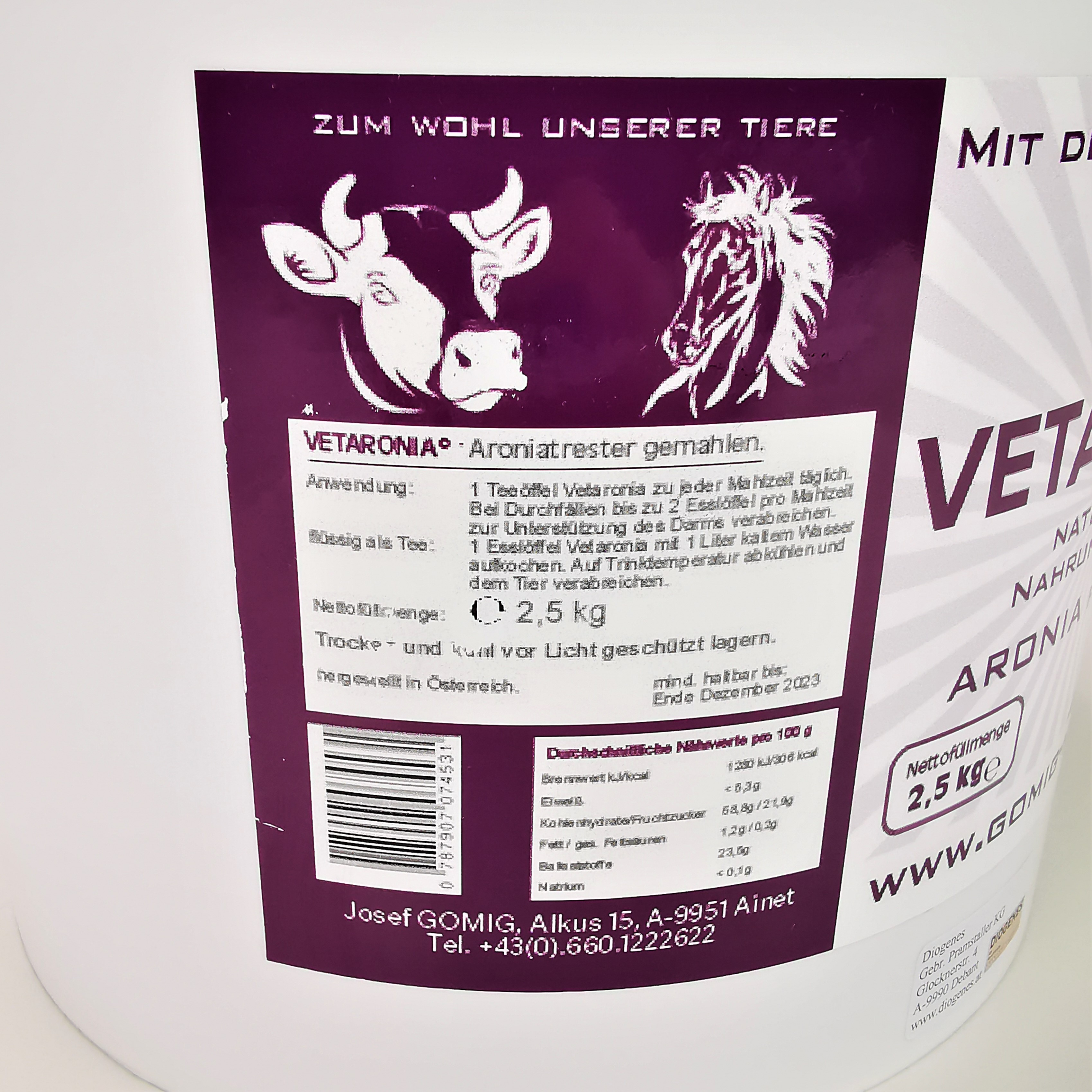 Bei Durchfall bis zu 2 Esslöffel Vetaronia pro Mahlzeit zur Unterstützung verabreichen.