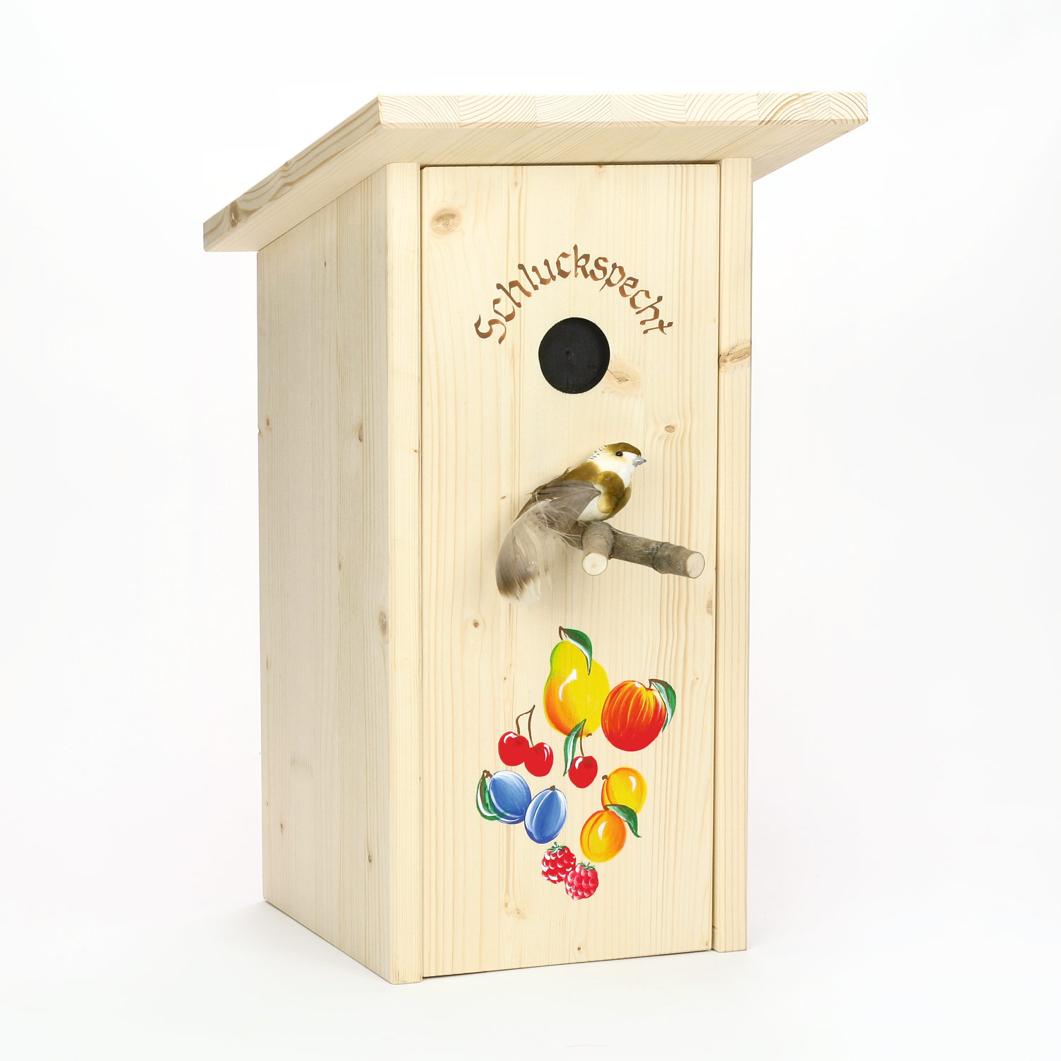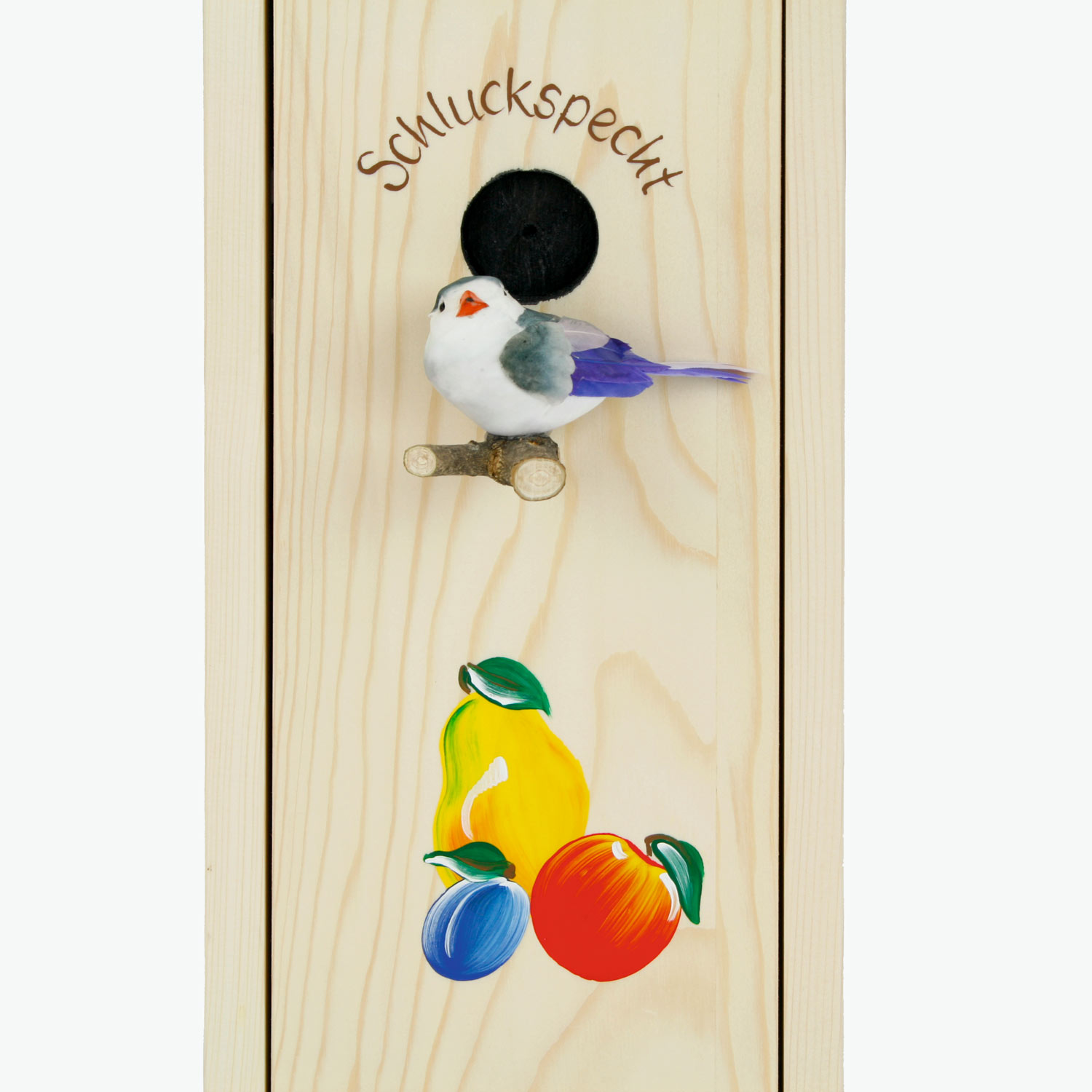 Nistkasten klein mit Flasche "Platin" 0,1 l und 2 Grappagläser bemalt