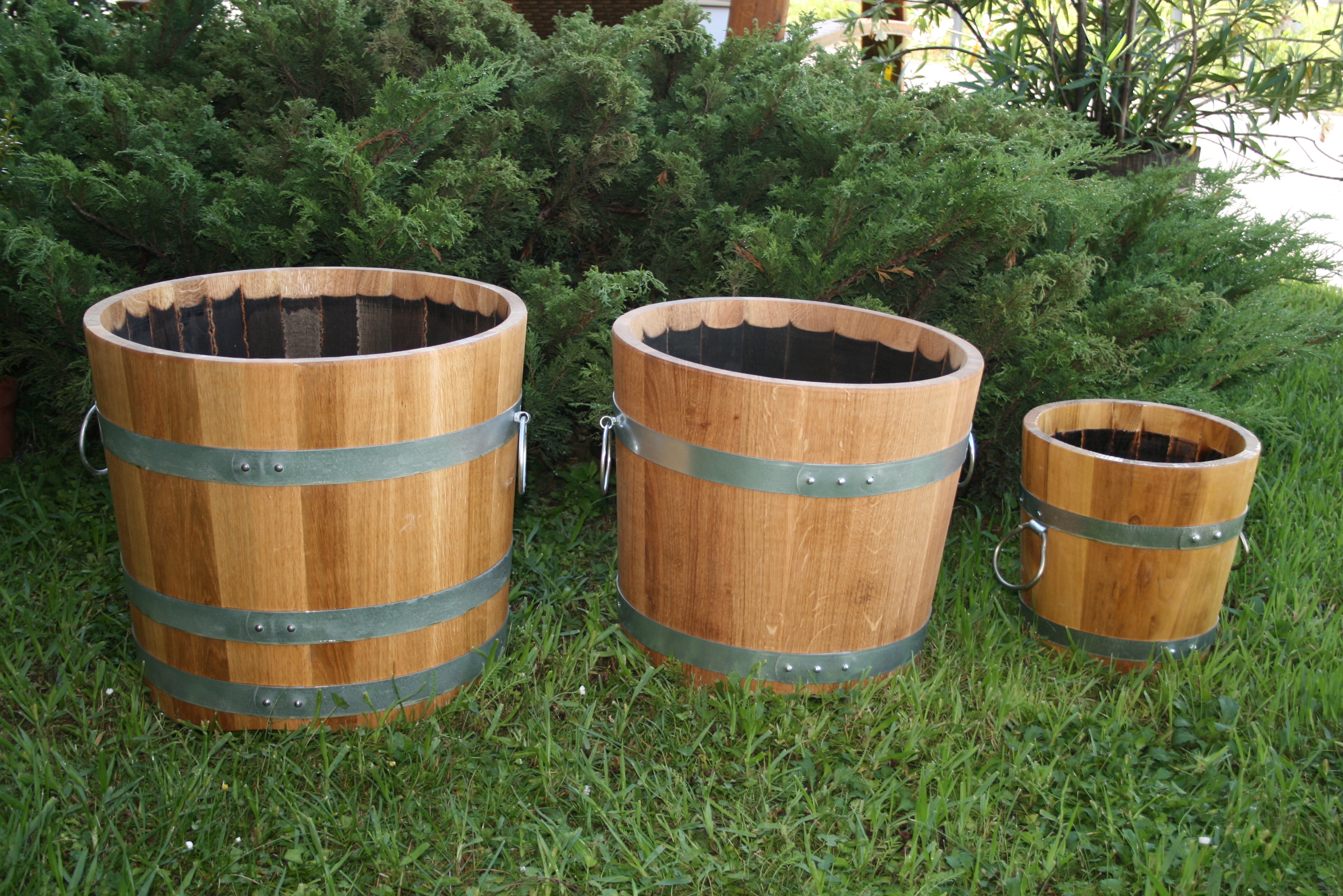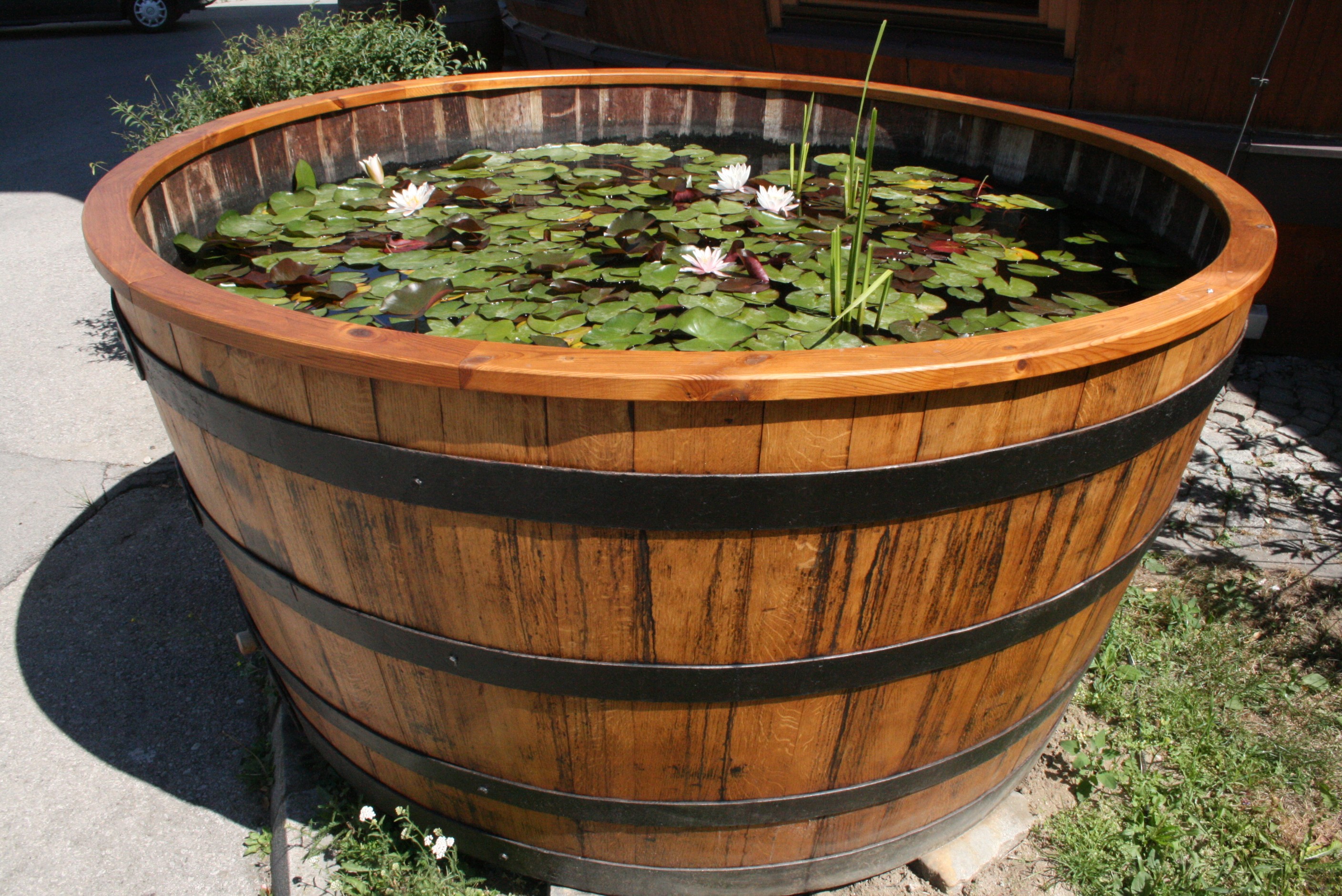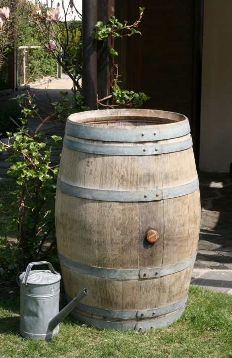 Wasser- und Blumenfässer