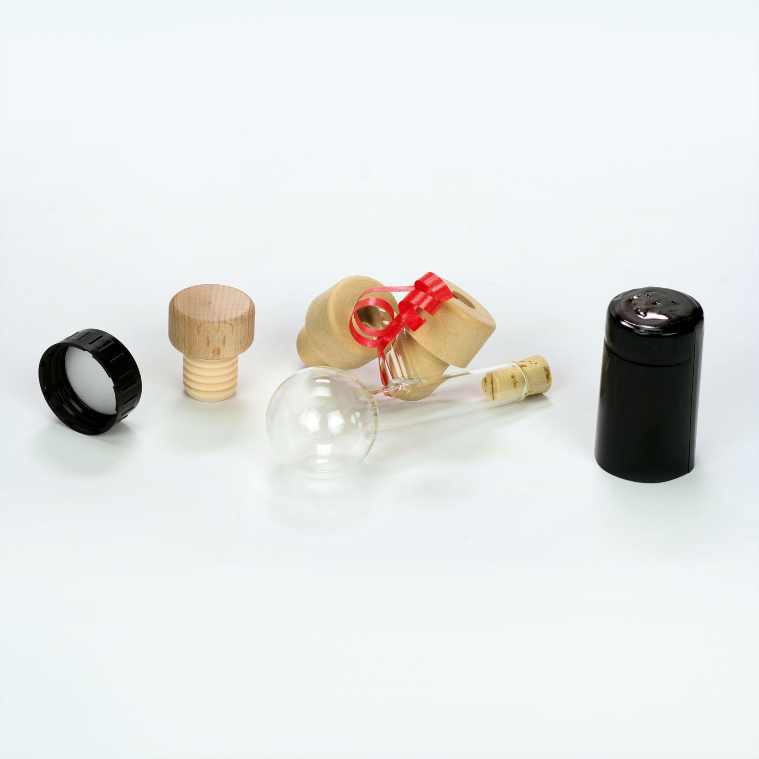 Korke, Schraubverschlüsse, Schrumpfkappen, Schnapsportionierer